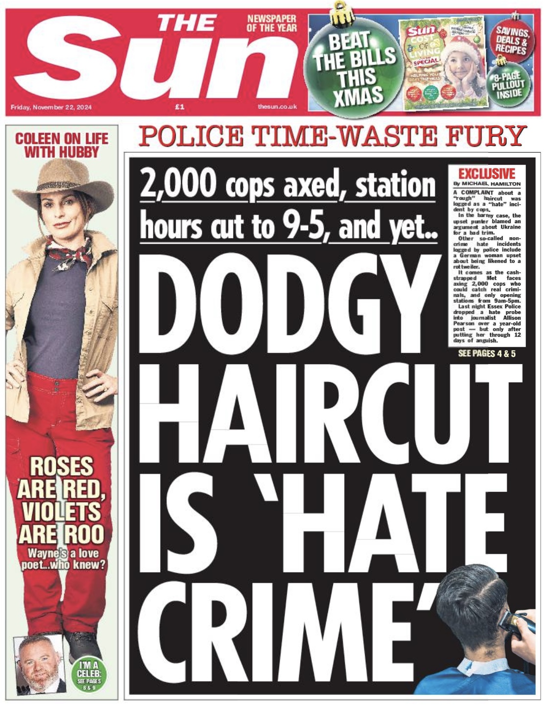 My investigations on the specifics of what sorts of incidents the police have recorded have unearthed some real gems that have made the front page of The Sun not once…. but TWICE.