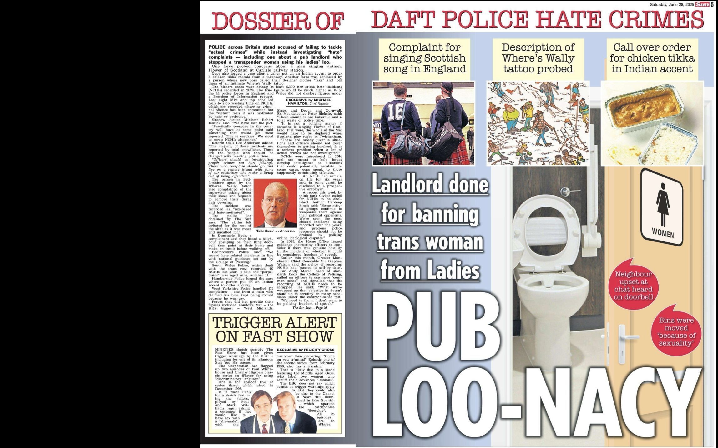 The resulting story made the front page of The Sun https://www.thesun.co.uk/news/31867648/police-wasting-time-probing-hate-crimes/ and was followed up by many of the other national newspapers https://www.express.co.uk/news/uk/1980089/dirty-underwear-non-crime-hate-incidents.